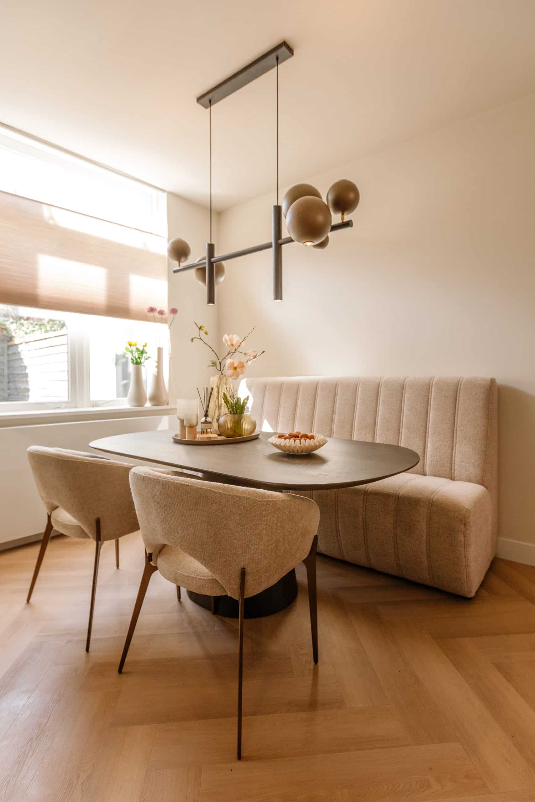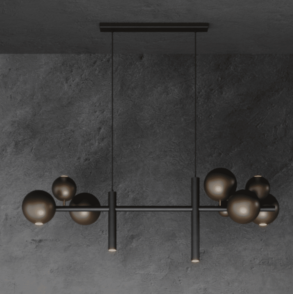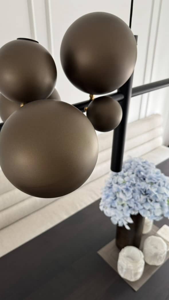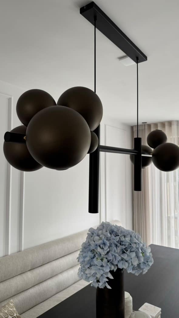 Kleur: de lamp is standaard met een zwart frame en platinum bollen. Andere kleuren mogelijk op aanvraag. Tip: bekijk de stalen in de showroom!